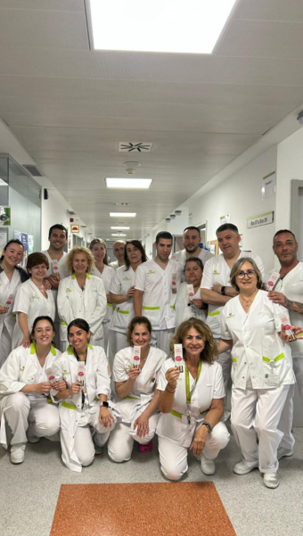 Representantes del comité de empresa han estado presentes en la entrada del Hospital vendiendo rosas impresas en 3D, dando visibilidad a la fiesta y recaudando fondos para el comité.