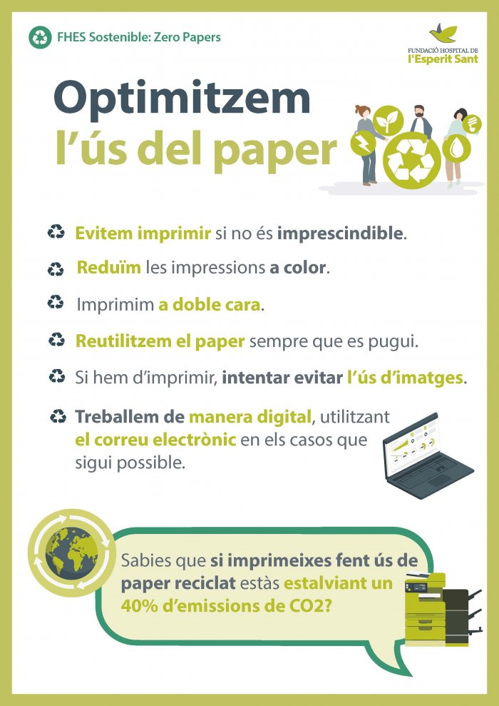 El 5 de junio se celebra el Día Mundial del Medio Ambiente, una jornada promovida por las Naciones Unidas para concienciar sobre la importancia de cuidar el planeta. En la Fundació Hospital de l'Esperit Sant, nos sumamos reafirmando nuestro compromiso con la sostenibilidad, tal y como recoge nuestra Política Medioambiental.