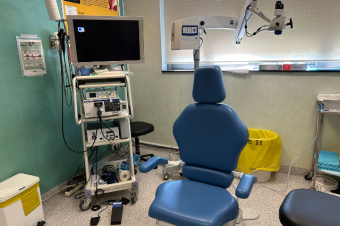 Por otro lado, en las consultas externas se ha incorporado un microscopio de nueva generación con tecnología "Narrow Band Imaging", que facilita una mejor visualización de los patrones vasculares y permite identificar lesiones malignas durante la misma visita. También se han renovado las sillas de exploración específicas, diseñadas para optimizar la posición del paciente y facilitar la exploración por parte de los profesionales. Además, se han incorporado dos sillones reclinables de reconocimiento, que ofrecen una mejor ergonomía y favorecen la exploración en pacientes con necesidades específicas. Esta incorporación permitirá aumentar hasta un 30% las consultas de pacientes con vértigo y disfagia.