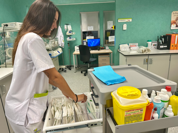 Los nuevos modelos aportan mejoras significativas tanto en diseño como en funcionalidad. En cuanto a ergonomía y movilidad, cuentan con una altura adecuada para el trabajo asistencial y con tiradores elevados que facilitan su desplazamiento. A nivel de organización, incorporan cajones con distribución modular, adaptados a las necesidades de cada servicio.
