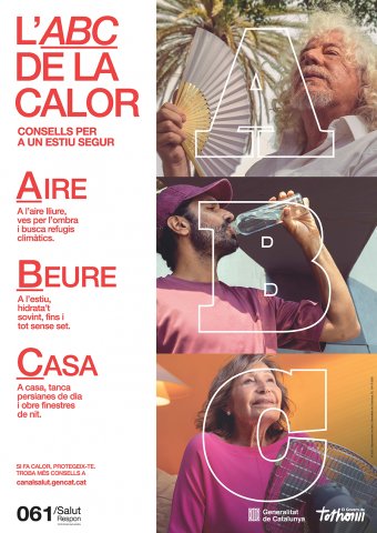 L'ABC de la calor és la campanya de Salut que iniciem per centrar el focus en la prevenció i en 3 consells que són l'ABC de la calor: Aire, Beure i Casa.