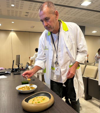 A continuació, un cuiner expert en texturitxats ha realitzat una sessió pràctica en què ha elaborat diversos plats adaptats per a pacients amb disfàgia com ara una paella o un bacallà amb salsa.