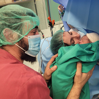 Just després del naixement, t'oferirem fer el contacte pell amb pell mare-nadó. Aquest primer contacte immediat reforça el vincle i l'adaptació del nounat.