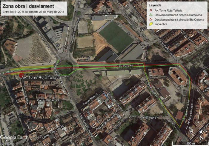 Las limitaciones afectarán a los vehículos que cruzan el puente desde Bon Pastor y quieren acceder a la Plaza Salvador Dalí, y al revés, a los vehículos que desde la plaza quieren acceder al puente. También se cortará el acceso desde la calle Torre Roja a la altura de la calle Bonavista. En todos los casos, los recorridos alternativos estarán señalizados.