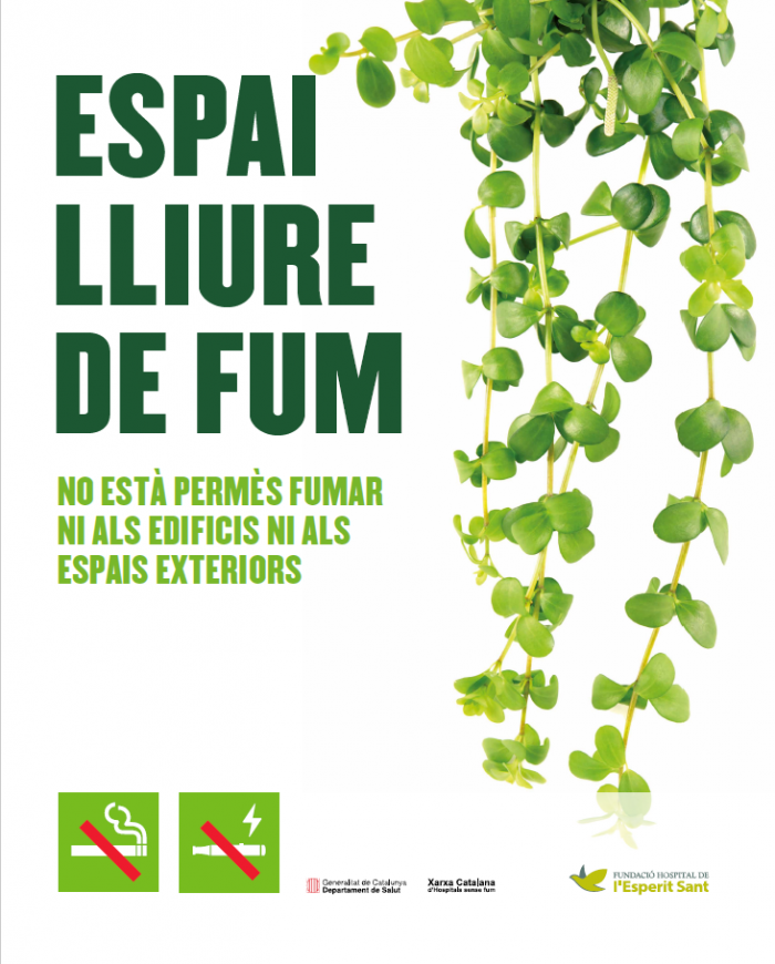 El Hospital ha comenzado a utilizar recientemente la nueva señalética de la Xarxa Catalana d'Hospitals sense fum. Aunque esta señalización ya hace tiempo que está disponible, la FHES la irá instalando a medida que se vaya deteriorando la cartelería actual.