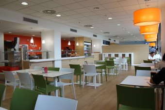 El objetivo del proyecto de renovación de las cafeterías era mejorar el bienestar y el confort de los profesionales y usuarios, ofreciéndoles una experiencia más positiva en el centro. Por este motivo, el rediseño ha comportado la creación de zonas de servicio rápido y zonas de mesas altas, la ampliación del autoservicio y la instalación de conexión gratis a internet. Además, se han montado puntos de reciclaje y separación de residuos, para reducir el impacto ambiental del servicio.