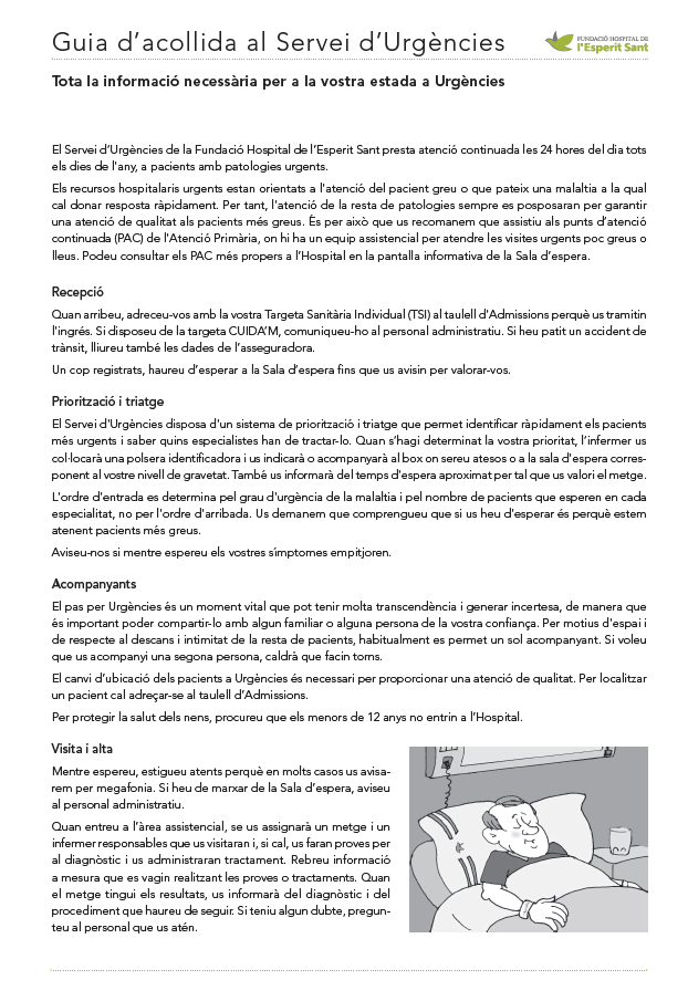 La Guía se ha editado en catalán, castellano, inglés, chino y árabe, y es una acción de mejora de la comunicación con los usuarios que se desprende del Procedimiento de información y acompañamiento a pacientes y familiares en el Servicio de Urgencias.