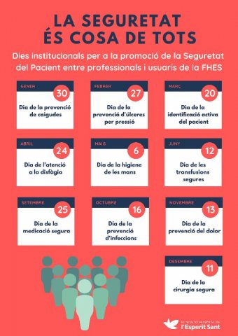 La Fundació Hospital de l'Esperit SAnt (FHES) ha puesto en marcha la campaña "La Seguridad es cosa de todos" con el propósito de promover buenas prácticas en seguridad del paciente entre los profesionales y los propios usuarios. Esta nueva iniciativa busca concienciar ambas partes de la importancia que tiene reducir el riesgo de daños innecesarios durante la asistencia sanitaria, como pueden ser errores en la medicación, infecciones hospitalarias o caídas de los pacientes.