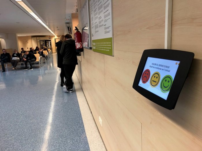 Por medio de unos terminales táctiles instalados en estas zonas, se ofrece a los usuarios la posibilidad de contestar encuestas cortas y muy visuales, diseñadas por la Unidad de Atención al Usuario a partir de las encuestas PLAENSA, que realiza el CatSalut cada 2 años. Un sistema integrado permitirá disponer de esta información en tiempo real y analizarla de forma periódica.