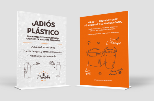 Los vasos desechables y la los envoltorios también se renovarán y serán ahora de papel kraft reciclado y reciclable.