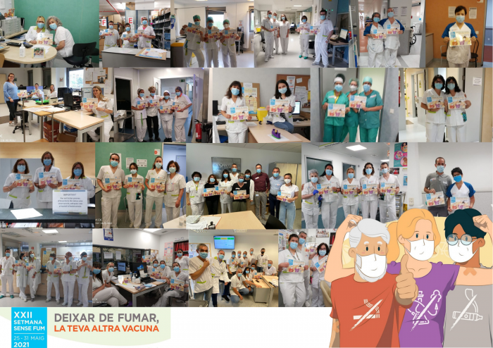 El lema para este año 2021 es: Dejar de Fumar, tu otra vacuna y durante esta semana hemos lanzado una campaña interna para promover la deshabituación tabáquica entre los trabajadores y trabajadoras de la FHES. Los datos de la última encuesta realizada por la Red Catalana de Hospitales Sin Humo, muestran que un 23,3 de los profesionales del hospital fuman. Por colectivos los que más fuman son el personal de enfermería (35,6%), seguido de los facultativos (26,6%), y el personal de administración (14,5%).
