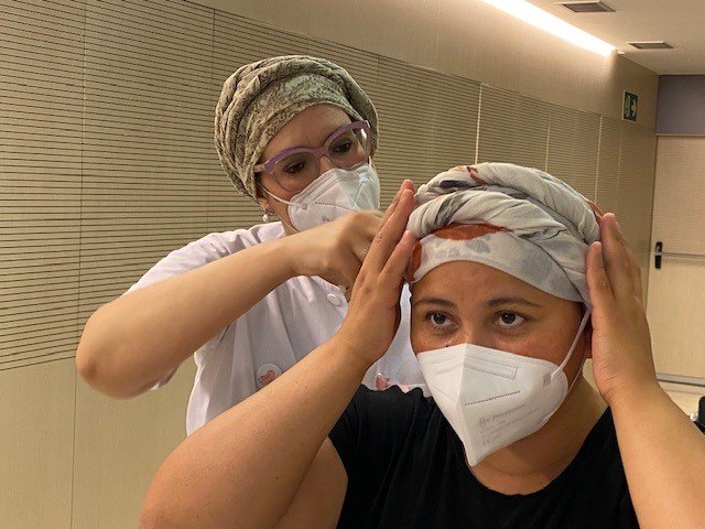 El pasado lunes 21 de junio, los voluntarios de la Fundació Hospital de l'Esperit Sant, gestionados por la Asociación Española Contra el Cáncer (AECC), organizó un taller gratuito de colocación de pañuelos destinado a pacientes oncológicas. El objetivo de esta sesión es ayudar a mejorar la autoestima de las pacientes que han perdido el cabello a consecuencia del tratamiento que están recibiendo.