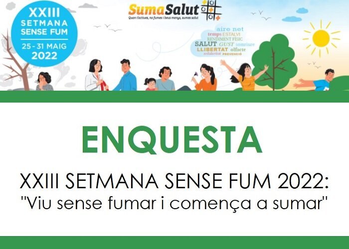 A finales de mayo se celebrará la XXIII edición de la Semana Sense Fum. Este año la campaña está dirigida a la población en general, y el objetivo de la encuesta es conocer cómo va evolucionando el consumo de tabaco, y su opinión en temas de actualidad sobre tabaquismo.