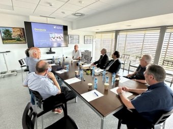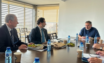 El presidente del Patronato, Josep Maria Cortès recibió la comitiva que se reunió con distintos miembros del Patronato y parte del equipo directivo de la FHES. Por parte del Patronato también asistieron el dr. Márius Rubiralta, SR. Domingo Soto y SR. Juan Luis Piqué.