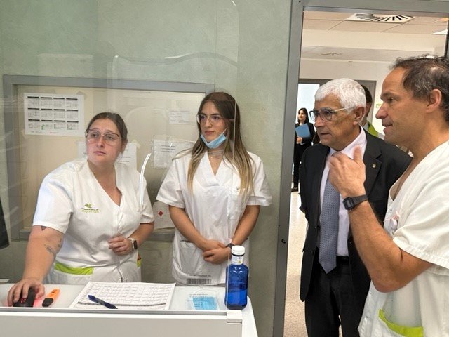 A continuación se ha celebrado una reunión conjunta con una representación de distintos colectivos del hospital en la que se han presentado algunos de los proyectos e iniciativas que la FHES tiene en marcha actualmente. Posteriormente, el conseller, acompañado del gerente de la Región Sanitaria Metropolitana Norte, José Arturo Míguez y de la directora del sector del Barcelonès Nord, Judith Vinyals, ha hecho un recorrido por diferentes espacios del Hospital de la mano del Director Gerente de Hospital, Vicenç Perelló, de la directora Asistencial, Maria José Liarte y de la directora de Enfermería, M. Àngels Fernández. La visita ha terminado con un saludo del consejero al Comité de Empresa.