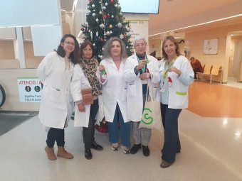El equipo de voluntarios de la Asociación Contra el Cáncer de la Fundació Hospital de l'Esperit Sant han querido contribuir al espíritu navideño llevando un detalle para los pacientes que están ingresados en el Hospital en estas fechas.
