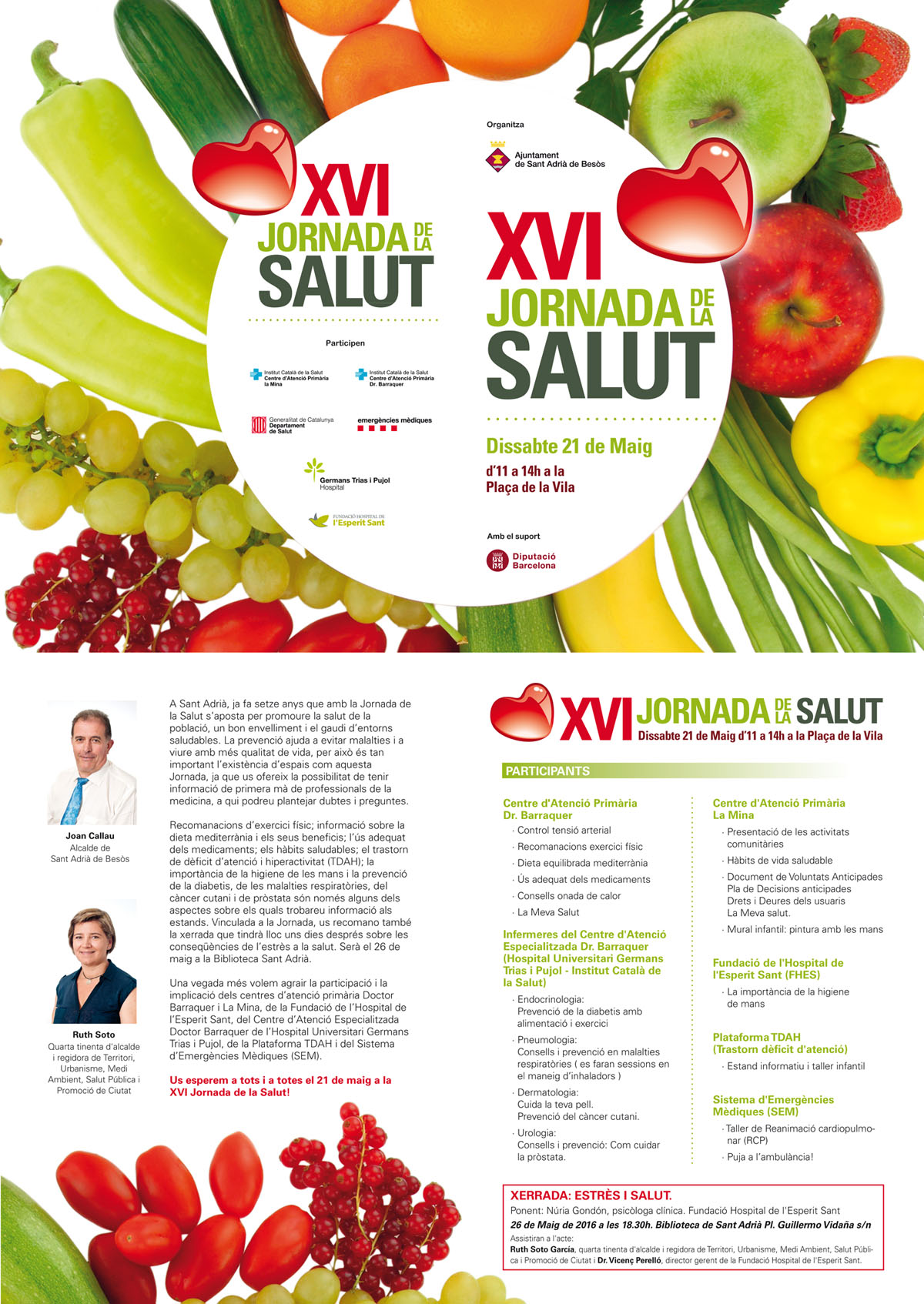 El Hospital participará este sábado día 21 de mayo en la XVI Jornada de la Salud de Sant Adrià de Besòs con un stand propio desde donde mostrará a los adrianenses la importancia de la higiene de manos. Enfermeras del GT Higiene de manos animarán a los ciudadanos a practicar el lavado de manos con soluciones alcohólicas y comprobar el resultado con lámparas ultravioletas.