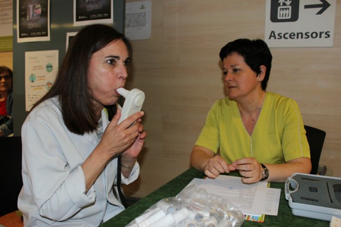Con motivo del Día Mundial sin Tabaco, martes 31 de mayo del Hospital instaló una mesa informativa en el vestíbulo principal. Desde la mesa, profesionales y estudiantes de enfermería informaron a trabajadores y usuarios sobre los riesgos que conlleva el consumo de tabaco, a la vez que recordaban las alternativas que existen para reducirlo y eliminarlo. Además, realizaron cooximetrías para conocer la cantidad de monóxido de carbono (CO) en aire espirado, que está estrechamente ligada a la cantidad de tabaco que se fuma, y hacían el test de Fagerström para calcular la dependencia física a la nicotina. Desde el stand también se re recordar de la prohibición de fumar en todo el recinto del Hospital, tanto en el interior del edificio como en todo el recinto exterior, que incluye los diferentes accesos al centro y la terraza .